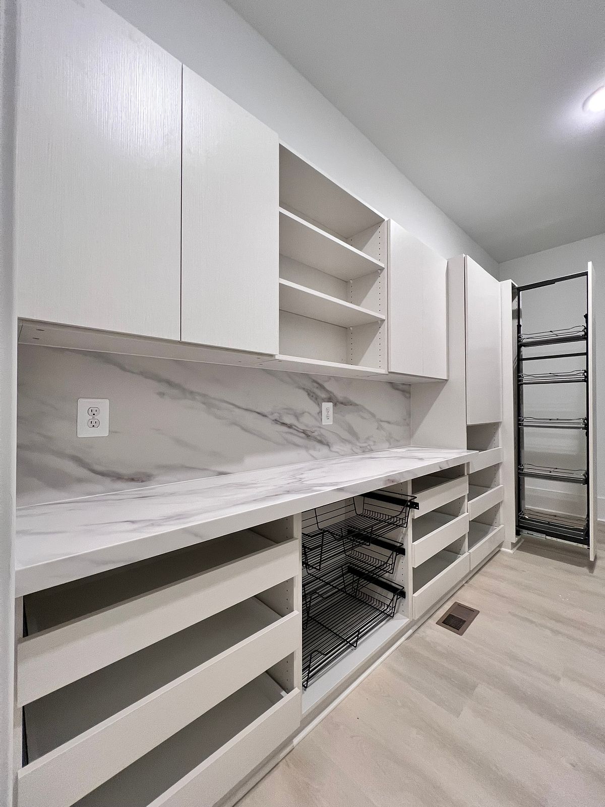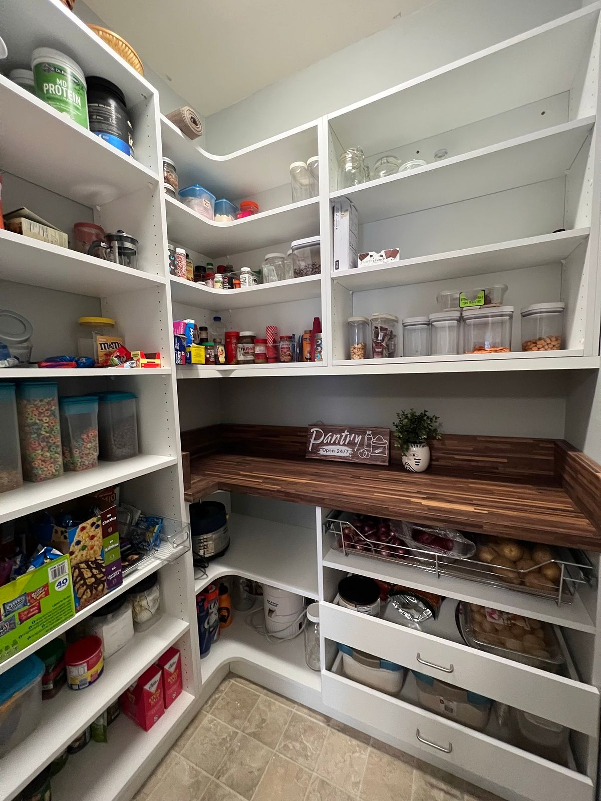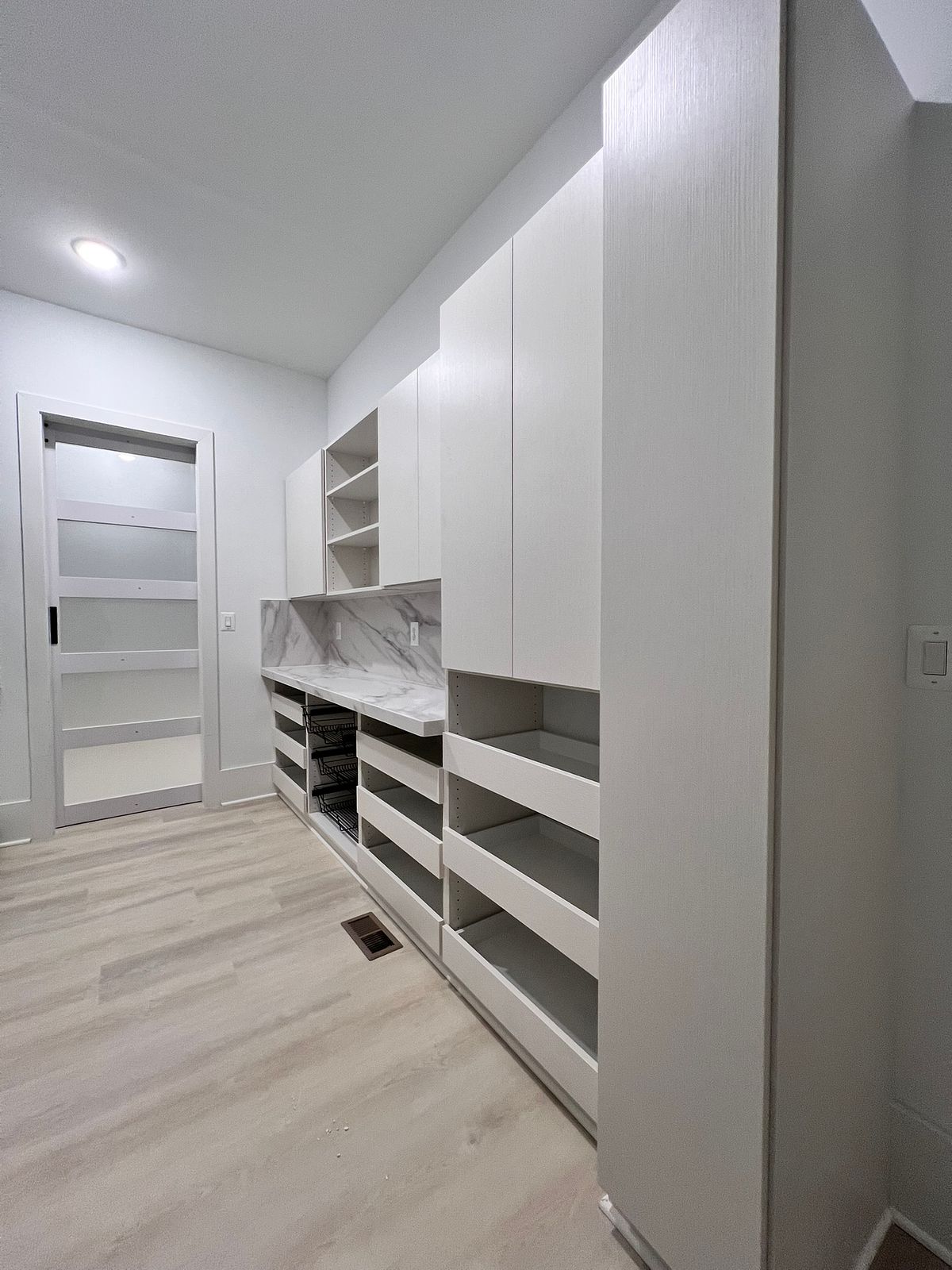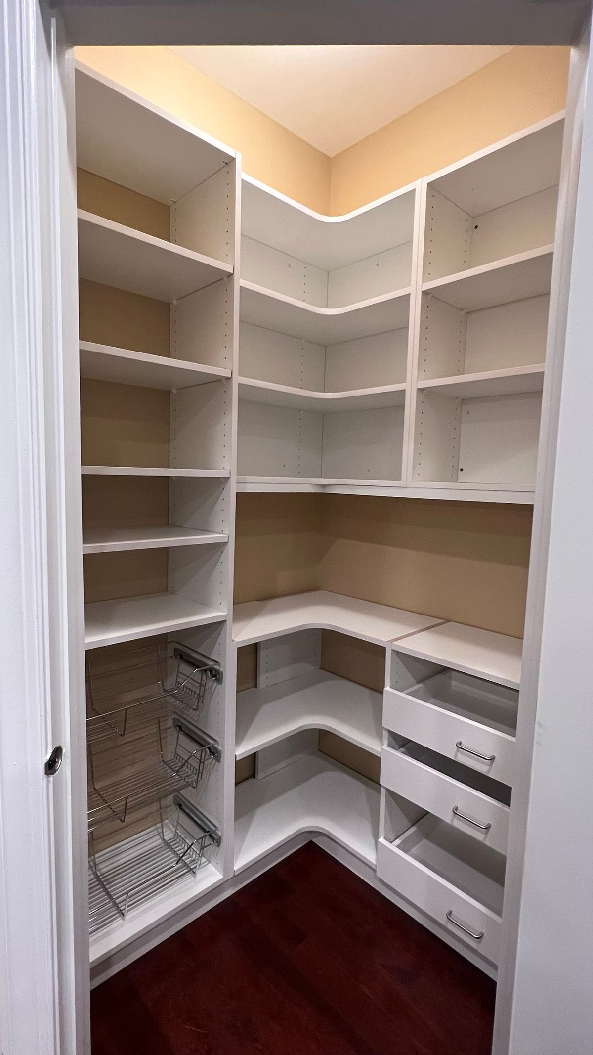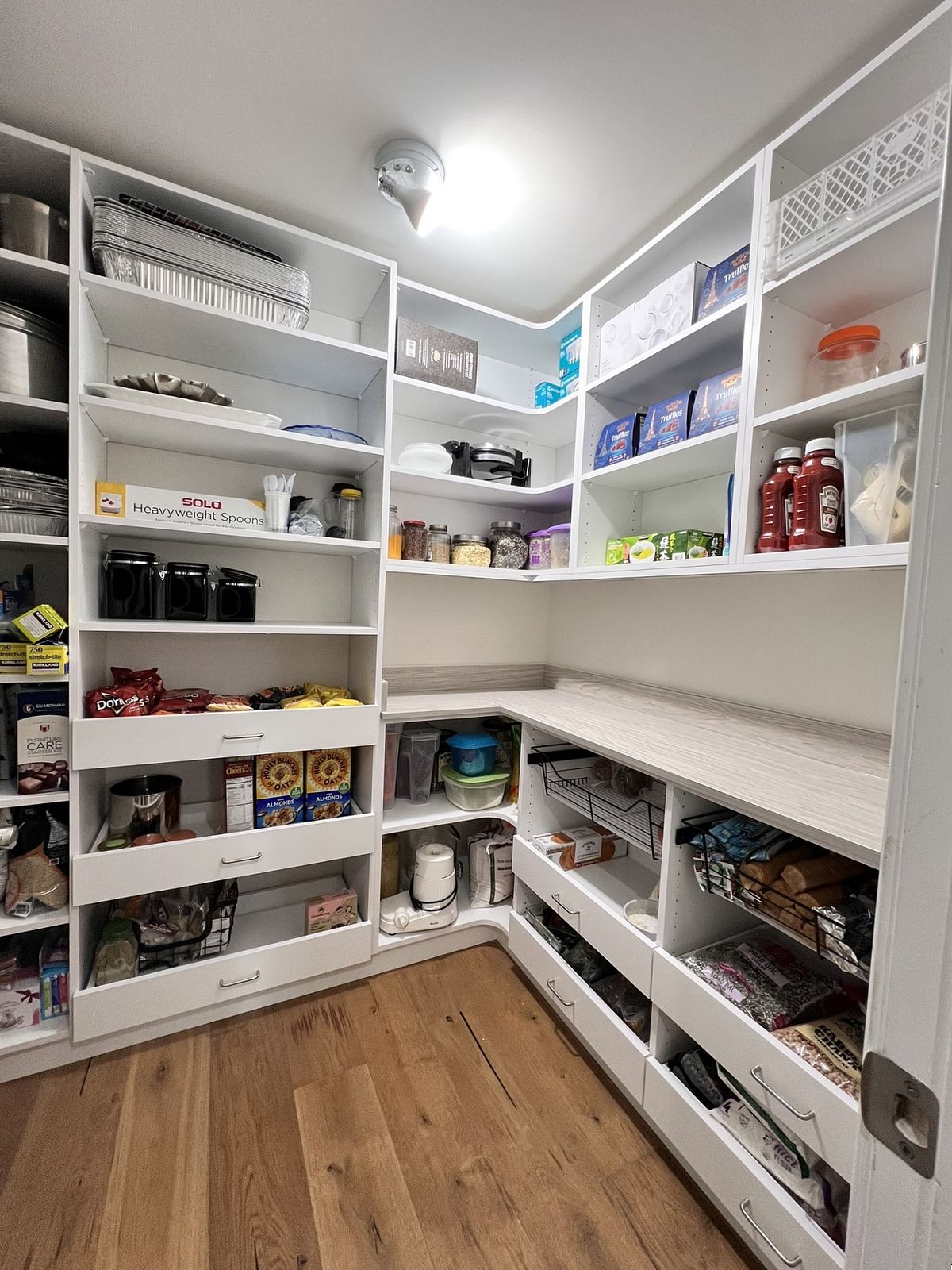 Custom pantry closets can be truly transformative, with the added benefit of being fully customizable. No pantry is too small or cluttered to achieve organization with the right accessories and layout. By integrating shelves, drawers, and various design features, you can create a space that is truly functional.
